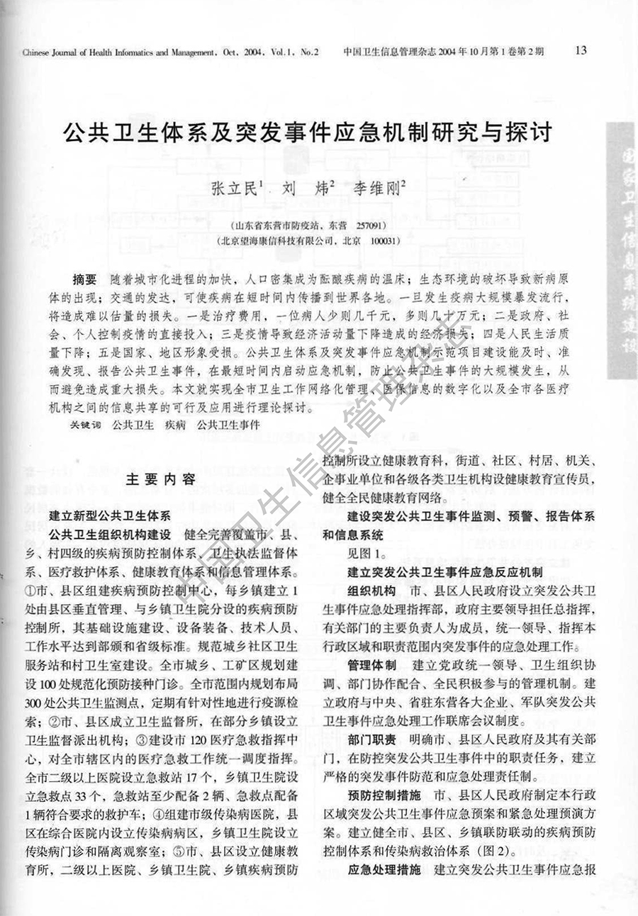 公共卫生体系及突发事件应急机制研究与探讨