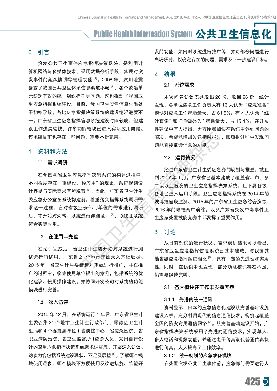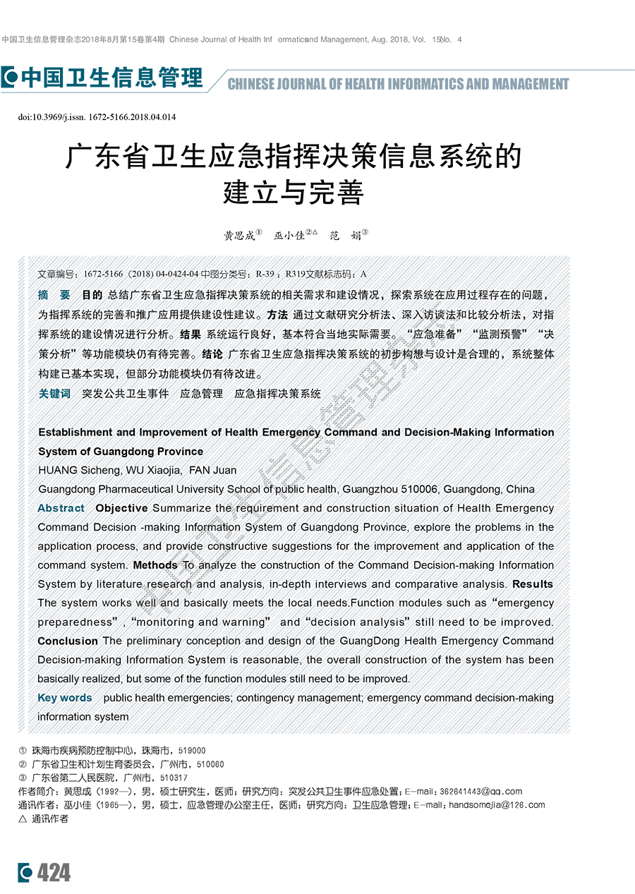 广东省卫生应急指挥决策信息系统的建立与完善
