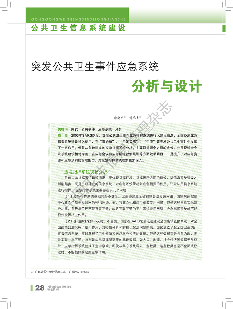 突发公共卫生事件应急系统分析与设计