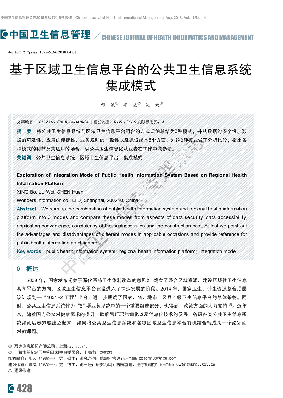 基于区域卫生信息平台的公共卫生信息系统集成模式