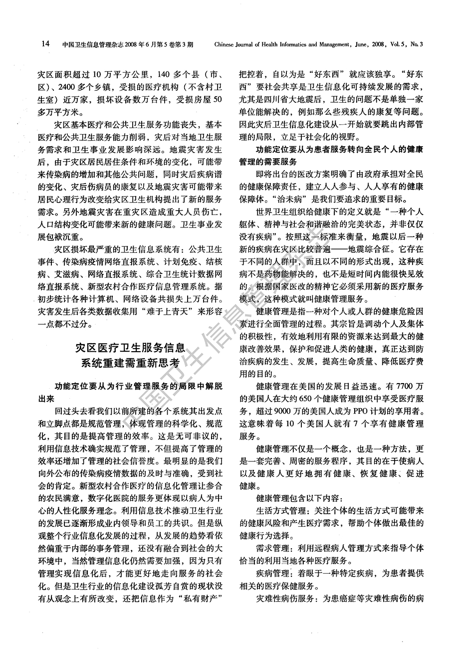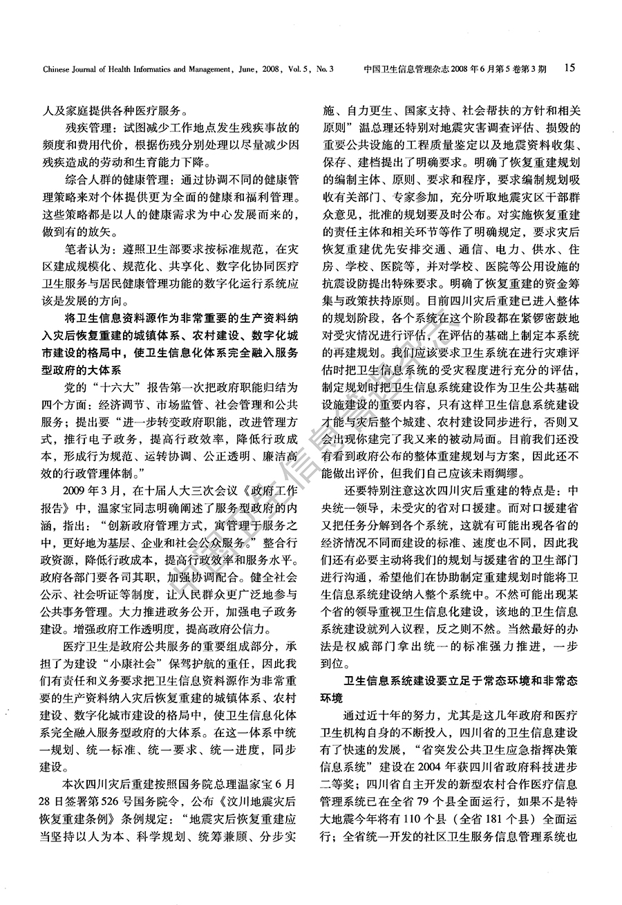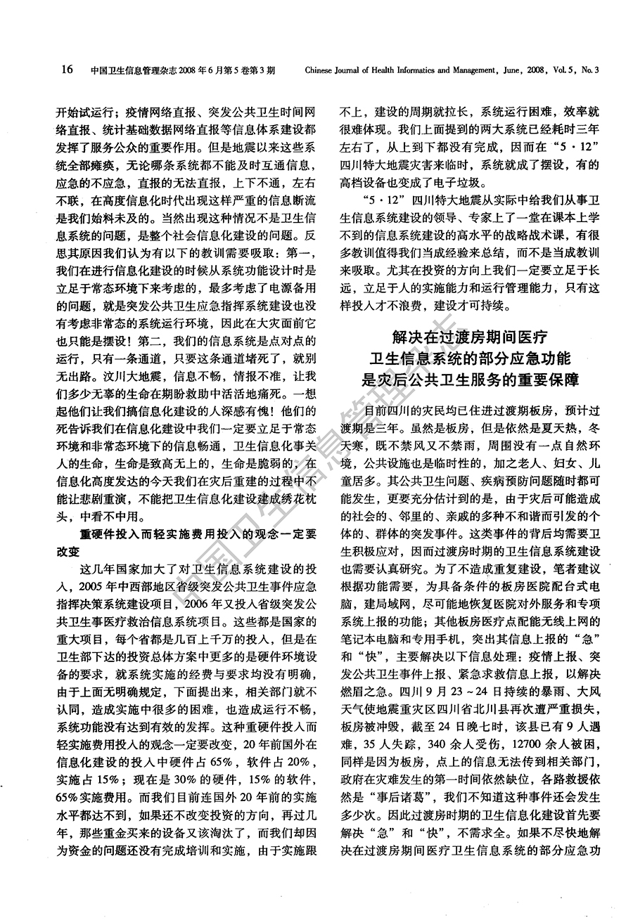 “5·12”汶川地震灾区医疗卫生信息系统重建的思考