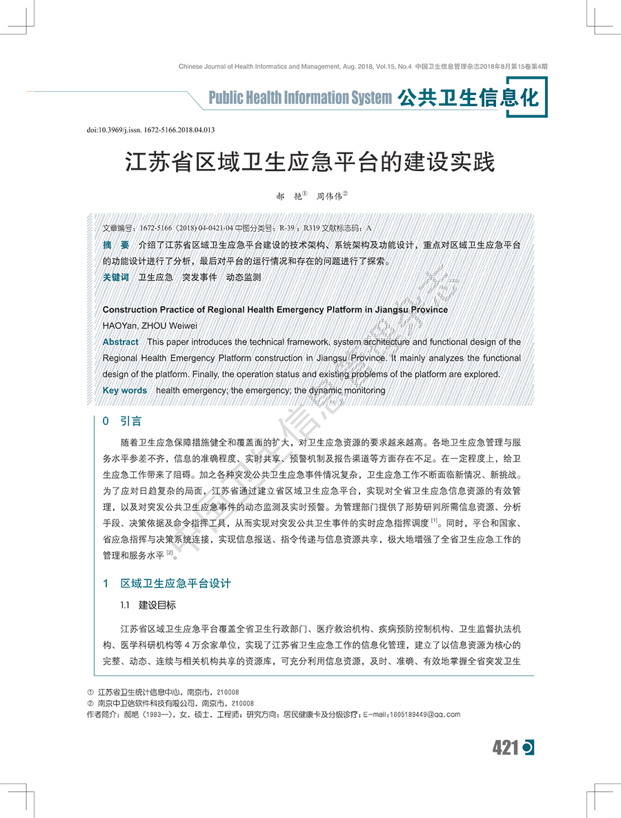 江苏省区域卫生应急平台的建设实践