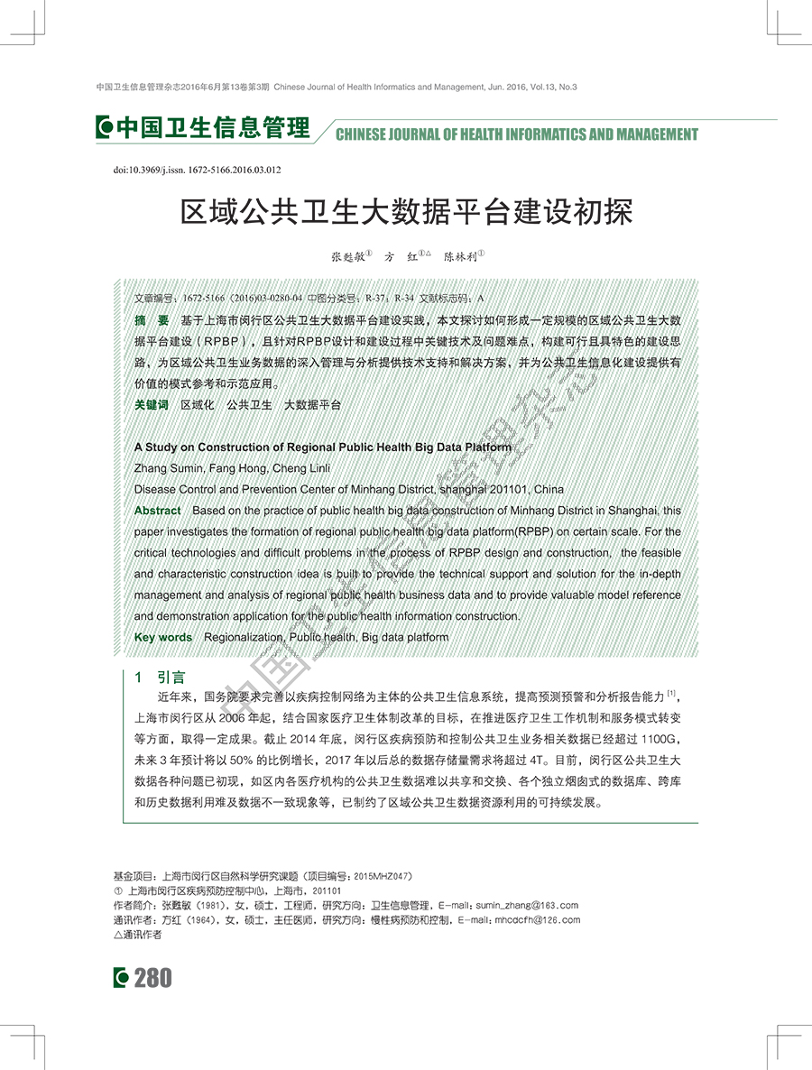区域公共卫生大数据平台建设初探
