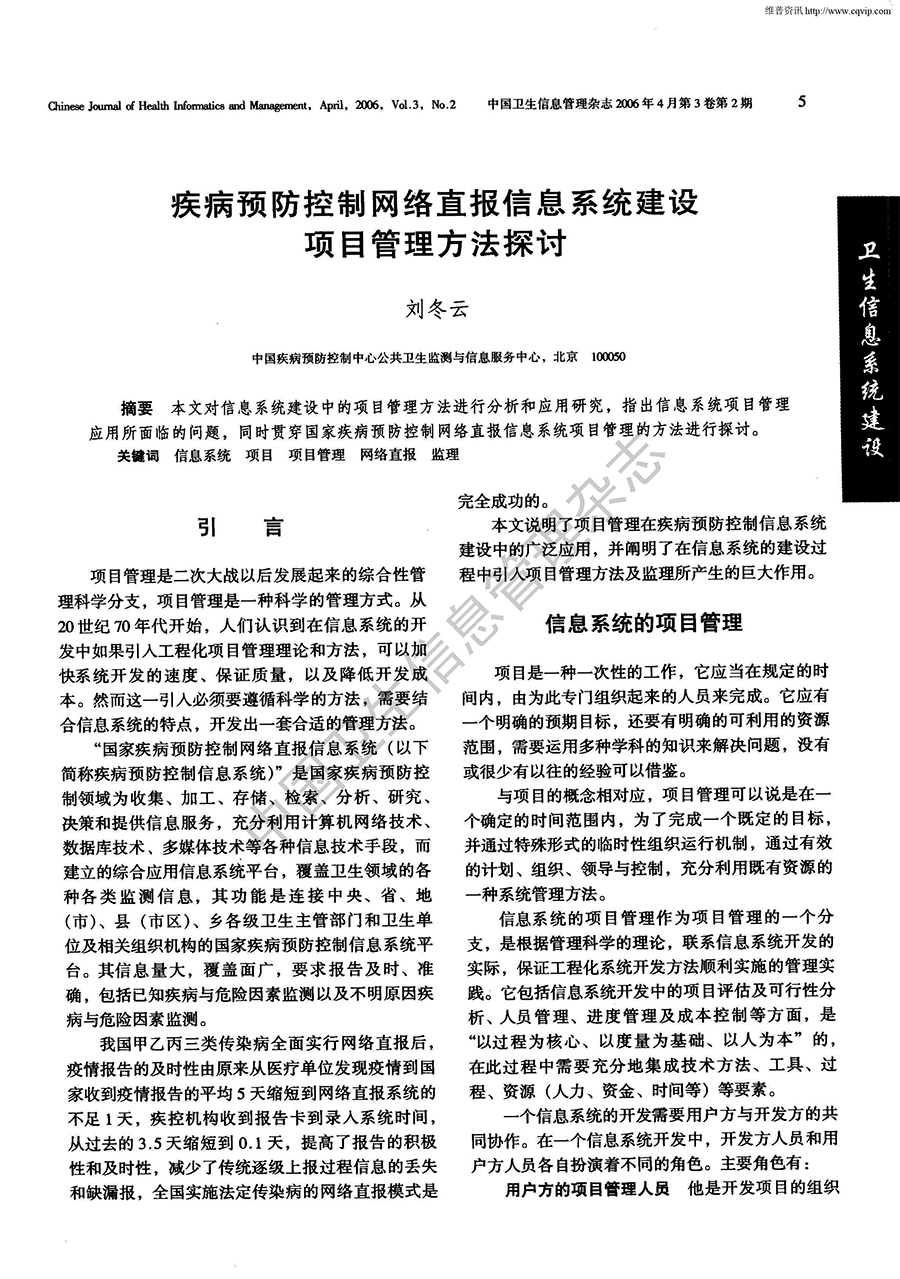 疾病预防控制网络直报信息系统建设项目管理方法探讨